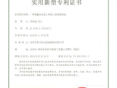 實用新型專利證書《一種設(shè)置在水果上料機(jī)上的新型果盤》