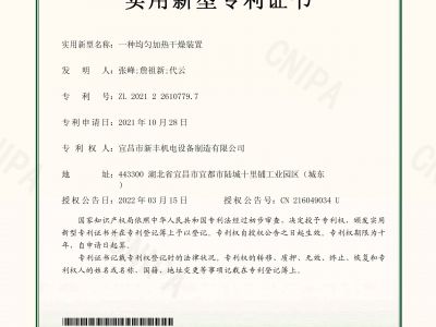 實(shí)用新型專利證書(shū)《一種均勻加熱干燥裝置》