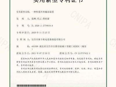 實(shí)用新型專利證書(shū)《一種料果環(huán)形輸送裝置》