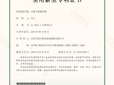 實(shí)用新型專利證書《一種環(huán)形加工的水果分選機(jī)》