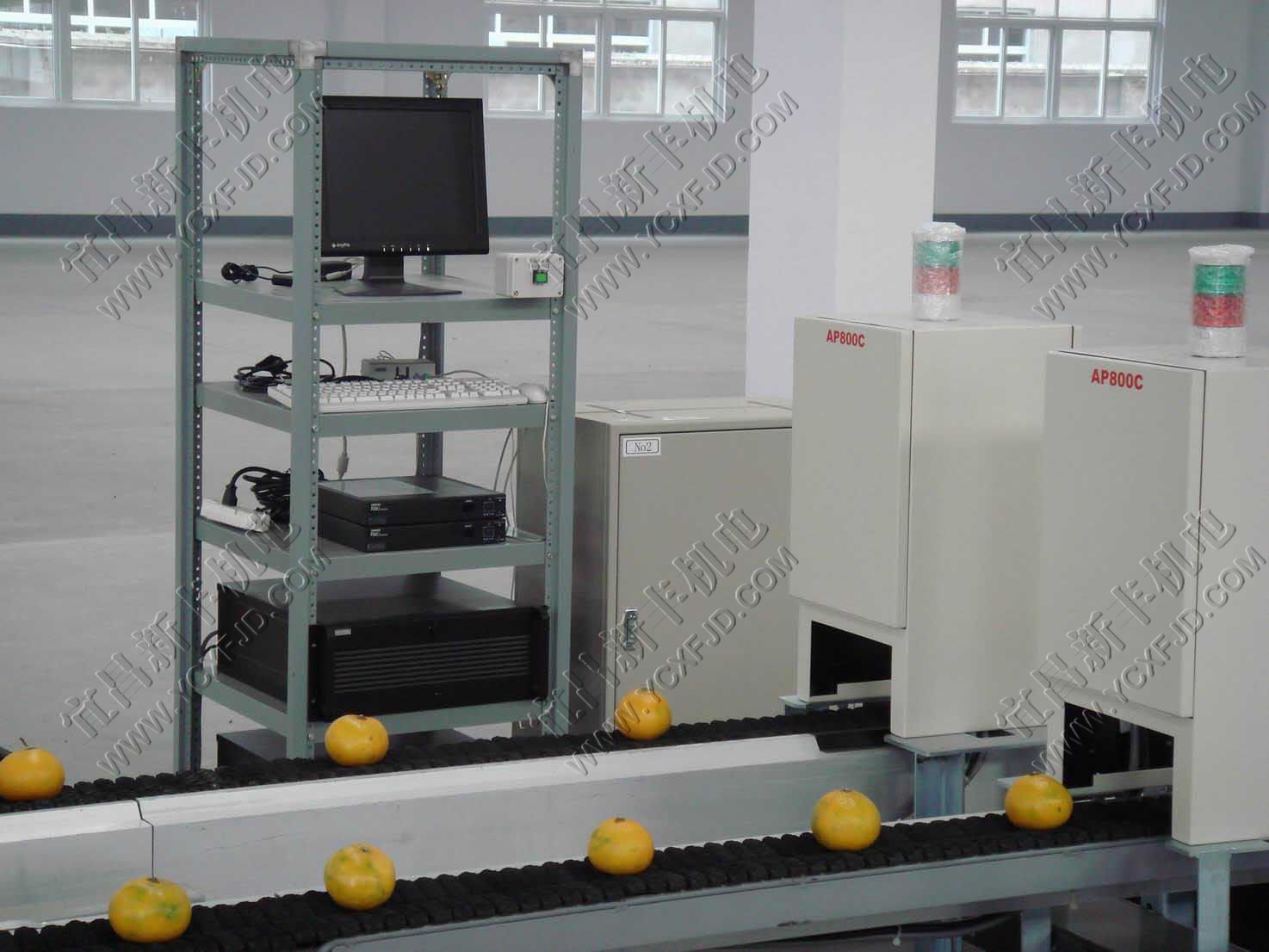 光電分選機(jī)引進(jìn)日本技術(shù),由光學(xué)成像再處理分選,它可根據(jù)用戶要求按果的大小、形狀、色澤、果面缺陷和損傷的外觀品質(zhì)指標(biāo)等進(jìn)行分選,必要時(shí)還可以加裝糖度分選,本分選線可用于蘋果、桃子、西紅柿、土豆、黃瓜等所有可上線的蔬果,單線每小時(shí)可分選36000個(gè)。